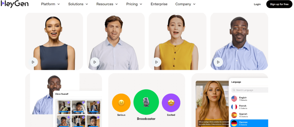 HeyGen is your production powerhouse. Templates, speed, volume, ease of use. It’s built for teams that need to create lots of content without a huge learning curve.
